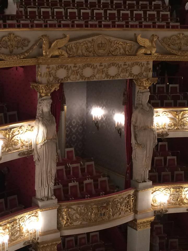 Literally ‘the phoenix’ in Italian, La Fenice has been rebuilt numerous times. Traviata, Rigoletto and Simon Boccanegra all premiered here. The Royal Box, known at various times as the Imperial Loggia or the Loggia d’Honore, is stunning.